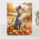 Cartão Gato Esfinge No Outono Deixa Arte De Ação De Graça