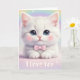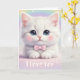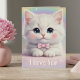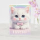 Este adorável cartão de saudação apresenta um gatinho branco fofo usando uma gravata borboleta rosa sobre o texto decorativo "Eu te amo". Seu colorido fundo de arco-íris é caprichoso e divertido, capturando o espírito da ocasião. O cartão perfeito para expressar gratidão por aquela pessoa especial, seja seu parceiro, melhor amigo ou membro da família. Personalize o interior com uma mensagem personalizada para torná-lo ainda mais sincero e único. Ideal para celebrar o Dia dos Namorados, um aniversário ou simplesmente porque sim.