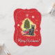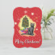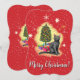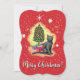 Este é um design de Natal fofo com fundo vermelho vibrante cheio de estrelas e flocos de neve minúsculos e com um gato lindo na frente de uma árvore de Natal. Envie suas vibrações amorosas, aconchegantes e de celebração para seus entes queridos!