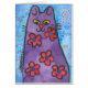 Cartão Gato florescido roxo do divertimento