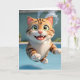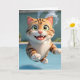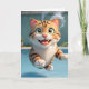 Cartão Gato Fofo Voando Nadar Mergulho Piscina Cômico Bra