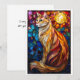 Cartão Gato Laranja e Branco Fofo Estilo Vitral