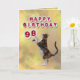Cartão Gato lúgubre e 98º balões de aniversário felizes