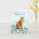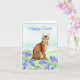 Cartão Gato Marrom Bonito com Ovos e Flores de Páscoa