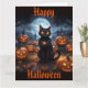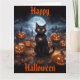 Cartão Gato Negro Spooky com Jack O'Lanterns