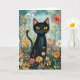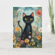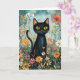 Cartão Gato Negro Whimsical com Ilustração de Flores Selv