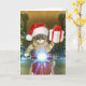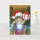 Cartão Gato no Papai Noel que entrega presente de Natal