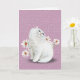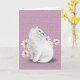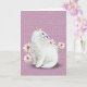 Gato persa branco e bonito com flores margaridas brancas em pontos brancos e fundo rosa-mauve para aniversário geral.
