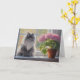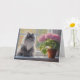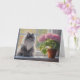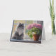 Cartão Gato Persa de Cinzas Cuecas com Flor Rosa