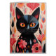 Cartão Gato Preto Adorável com Dentro Vazio de Flores Ros