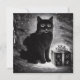 Aqui está um cartão de Natal divertido com um gato preto sentado ao lado de um presente de Natal. É um pouco gótico e tem um tom ligeiramente vintage. Isso faz um belo cartão para enviar a um amante de gatos ou um gótico ou dar junto com um presente.