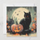 Cartão Gato Preto e Abóbora de Halloween