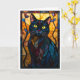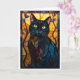 Cartão Gato Preto Estilo Vitral com Folhas