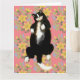 Cartão Gato smoking dormindo na cama floral