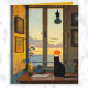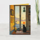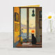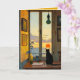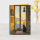 Este belo cartão apresenta um gato preto ao lado de uma janela observando o pôr do sol. No interior há uma mensagem editável. Você pode usá-lo como um cartão de "saudades" ou cumprimentos para um aniversário, um pedido de desculpas, uma carta de amor, cartão de condolências, etc. Crédito artístico: Lynda McDaniel-Smith, 2024.