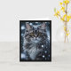 Cartão Gato Tabby Cinza na Neve Cumprimento em Branco