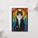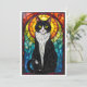 Cartão Gato Tuxedo Preto e Branco em Estilo de Vitral em