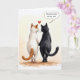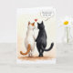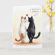 Dois gatos, um laranja e branco, o outro preto, seguram patas enquanto olham para um coração vermelho flutuando sobre eles. O texto é editável.