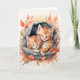 Cartão Gatos Malhados de Aquarela Dormindo Flores Fundo