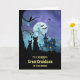 Cartão de Dia das Bruxas de neto excelente que tem uma cena mimamente assustadora, com uma casa assombrada, gatos pretos e morcegos. Uma coruja também!