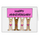 Four cartoon men wearing small pink underpants, holding up a large pink sign that says 'Happy Anniversary'