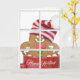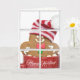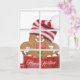 Pão de Natal na caneca vermelha em windowpane com flocos de neve para Felizes Feriados