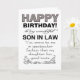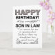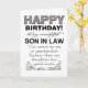 O genro prova o bom gosto da filha, diz a frente deste cartão de aniversário engraçado. O cartão foi projetado pensando na sogra que deseja adicionar humor ao marido da filha enquanto ele celebra mais um ano de vida. A mensagem fofa no interior transforma o doce elogio na frente em um elogio próprio sorrateiro, mas chocantemente engraçado que fará o marido da filha rir alto.