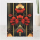 em flores vermelhas e douradas, tudo isso contra um fundo preto e cinza chique