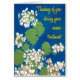 Um cartão de saudação floral bonito para apoio a alguém que está a ser submetido a um tratamento para o cancer, com gérânios brancos sobre fundo azul, a partir de uma imagem de Judy Adamson. Você pode adicionar sua própria mensagem de dentro.