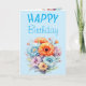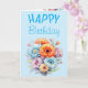 Cartão Gerbera flowers happy birthday blank blue