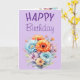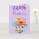 Cartão Gerbera flowers happy birthday blank purple