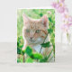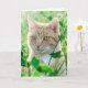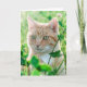 Cartão Ginger Cat com olhos verdes na grama