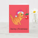 Um cartão de Natal excelente para amantes de gatos, 'Meowy Christmas' tem um gatinho gengibre bonitinho com chapéu de Papai Noel, brincando com um bauble de árvore de Natal. Dentro há mais dois gatos no dentro, e uma saudação de Natal personalizada que pode ser personalizada para o gosto (ou simplesmente abandonada como está).