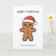Mande alegria de férias com um cartão de Natal dobrado, com um adorável homem de pão-de-gengibre num chapéu festivo de Papai Noel. Perfeito para cartões de natal, mensagens familiares ou como um doce cartão sazonal para amigos e entes queridos.