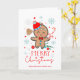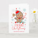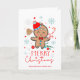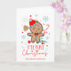 Um cartão de boas-vindas do Gingerpão Man Cookie com um feliz Natal, flocos de neve e design de cana doce.