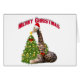 Adorável Girafa de Natal com seu Chapéu Santa e árvore de Natal decorada - ele está colocando a estrela em cima da árvore