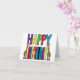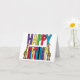 Girafas caprichosas únicas e fofas em pé ao lado de letras de bloco de feliz aniversário coloridas, design de cartão de saudação é popular entre os amantes de girafas e animais ao celebrar aniversários.