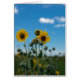 Lindos girassóis num dia de verão cristalino, drasticamente contrastados com um céu azul profundo.