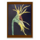 Girassol que alcança para fora. Máscaras de amarelo, de marrom, e o verde no fundo preto, quadro com marrom. Pode igualmente ser moldado.