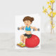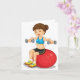 Getting exercise is important and this design shows a girl exercising with weights. At the same time she is sitting on a swiss ball which requires balance. This design should have you want to workout. This girls exercising with weights design looks great on these note cards