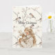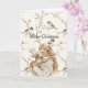 Cartão Girl Holding Deer Birds Tree Cream Christmas