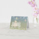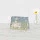 A little girl sitting on a bench in flowers and grass with a bird flying a kite