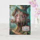 Uma casa de árvore baleada em uma floresta exuberante é adornada com flores vibrantes e folhagem. Uma placa que diz "Nenhum Menino Permitido" é colocada de forma destacada na entrada. O texto é editável.