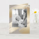 Elegant and glamorous faux gold abstract swashes on dark silver/taupe background, white blank label with taupe border and editable text fields. Inside features complementary abstract background with blank label with suggested greeting and text field.