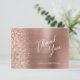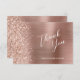 Este elegante e moderno cartões de agradecimentos de casamento plano apresenta uma falsa borda de brilho de diamante em um fundo de metal esfregado em ouro rosa. O texto está no moderno script de escrita manual e sans serif font, com espaços para nomes e respostas de convidados. O verso apresenta um rosa dourado correspondente, metal escovado e design brilhante.