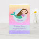 Este cartão de aniversário apresenta uma bela design de sereia com falso brilho arco-íris. Você pode personalizar a frente da placa com um nome e a dentro de texto também.