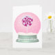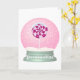 Um pirulito branco e cor-de-rosa com capa de neve montado na neve deste globo de neve. Muito fofo e único.Personalize se quiser.