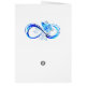 Luminous infinity symbol with glowing, beautiful, lushly blooming rose made of blue flames on black background.