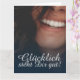 Glücklich, Dir, instinto! Kompliment Karte mit lachendem Frauengesicht und handschriftlichen Grüßen auf der Vorderseite der Karte. Restliche Flächen stehen zur freien Verfügung.