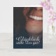 Glücklich, Dir, instinto! Kompliment Karte mit lachendem Frauengesicht und handschriftlichen Grüßen auf der Vorderseite der Karte. Restliche Flächen stehen zur freien Verfügung.